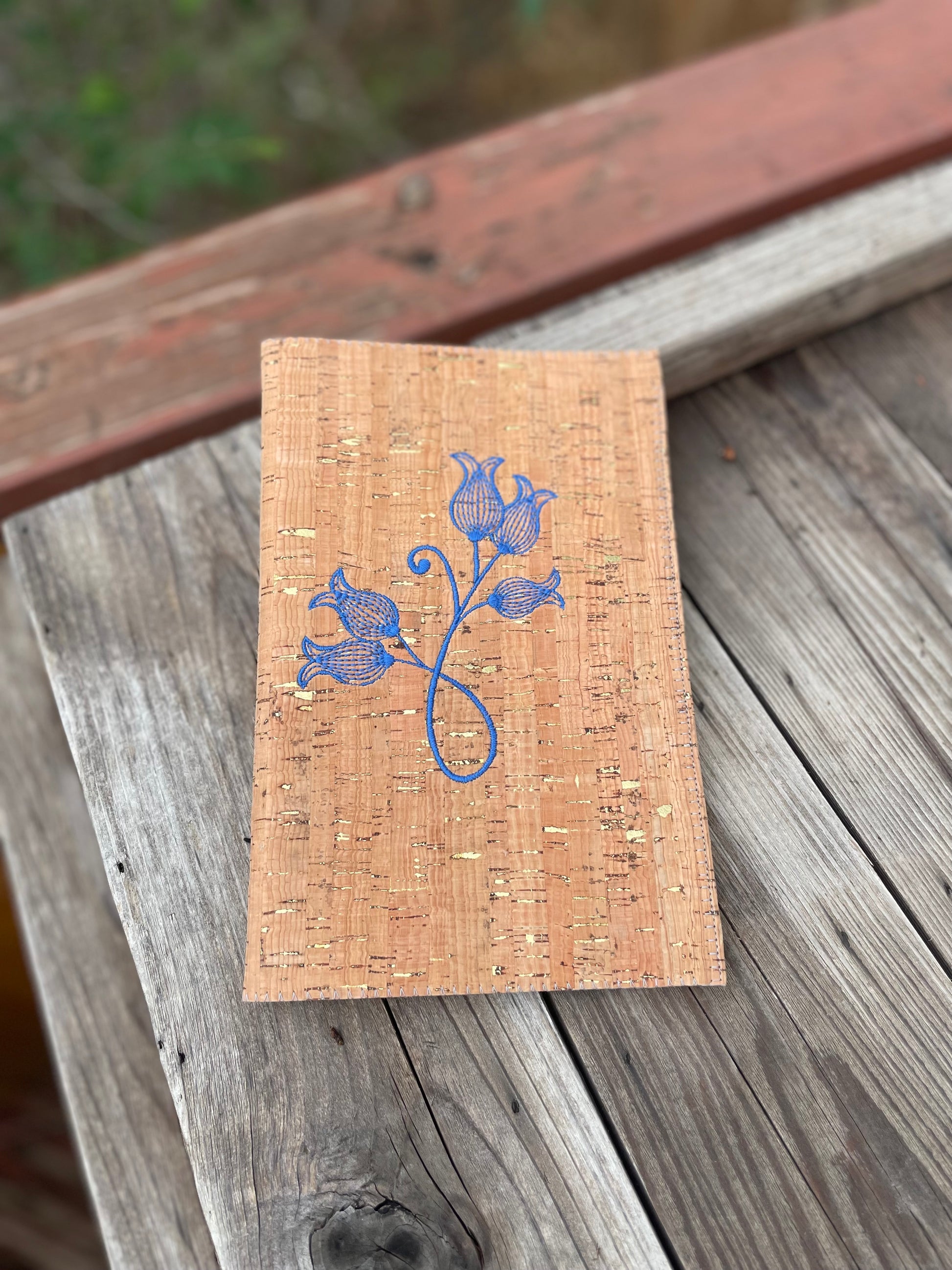 This charming 5x7 notebook cover and notebook set is perfect for nature lovers. The cover is made from cork and features a delicate bluebell flower design, beautifully embroidered with blue thread. The included notebook has 100 pages of high-quality paper, perfect for writing, drawing, or sketching. This set is a great way to keep your thoughts and ideas organized while adding a touch of natural beauty to your everyday life.